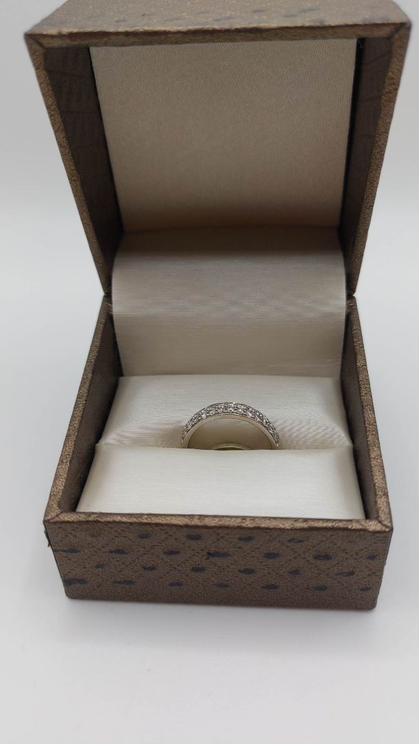 Bague en or blanc 14k ornée de 30 petits diamants.