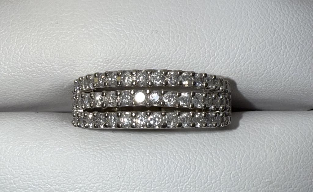 BAGUE EN OR 14KT BLANC PAVE DE DIAMANT