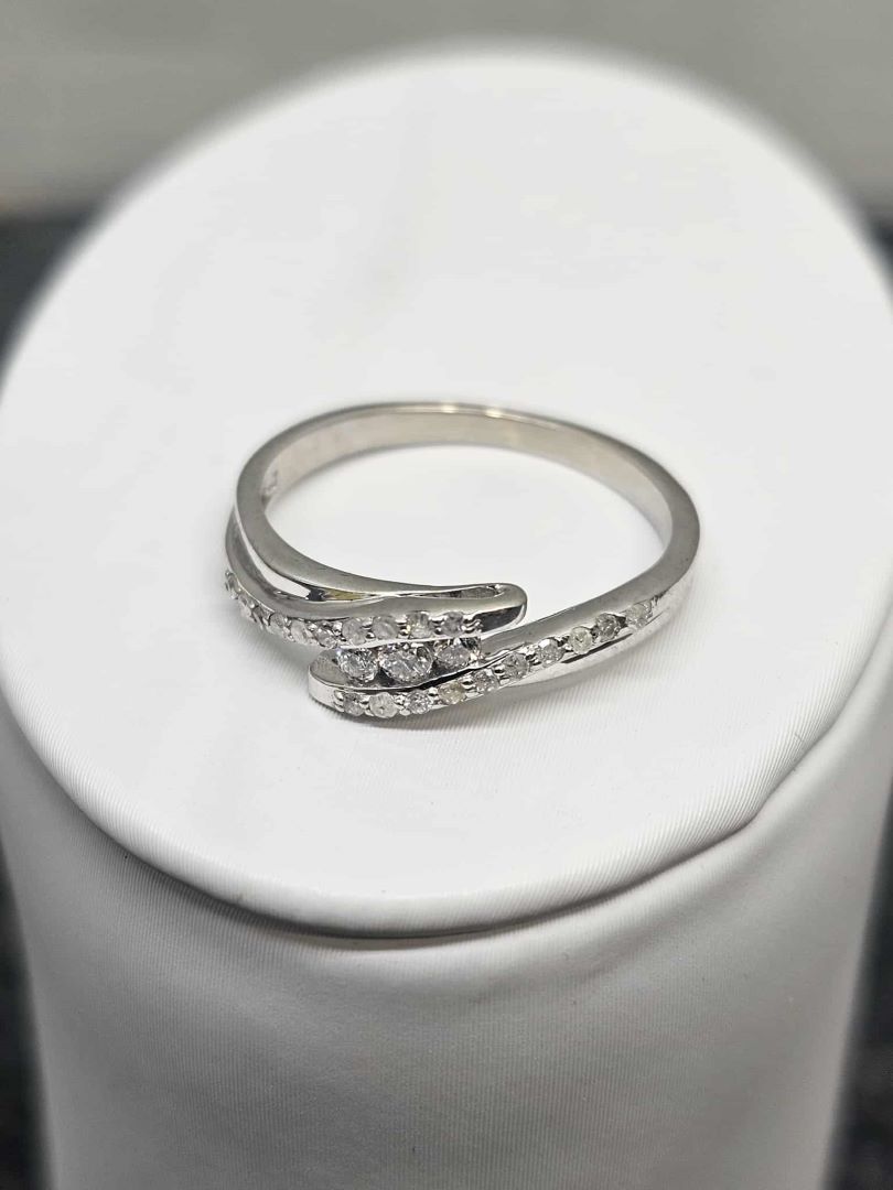 BAGUE OR BLANC 10K + 3PTS DIAMANT / 5.5