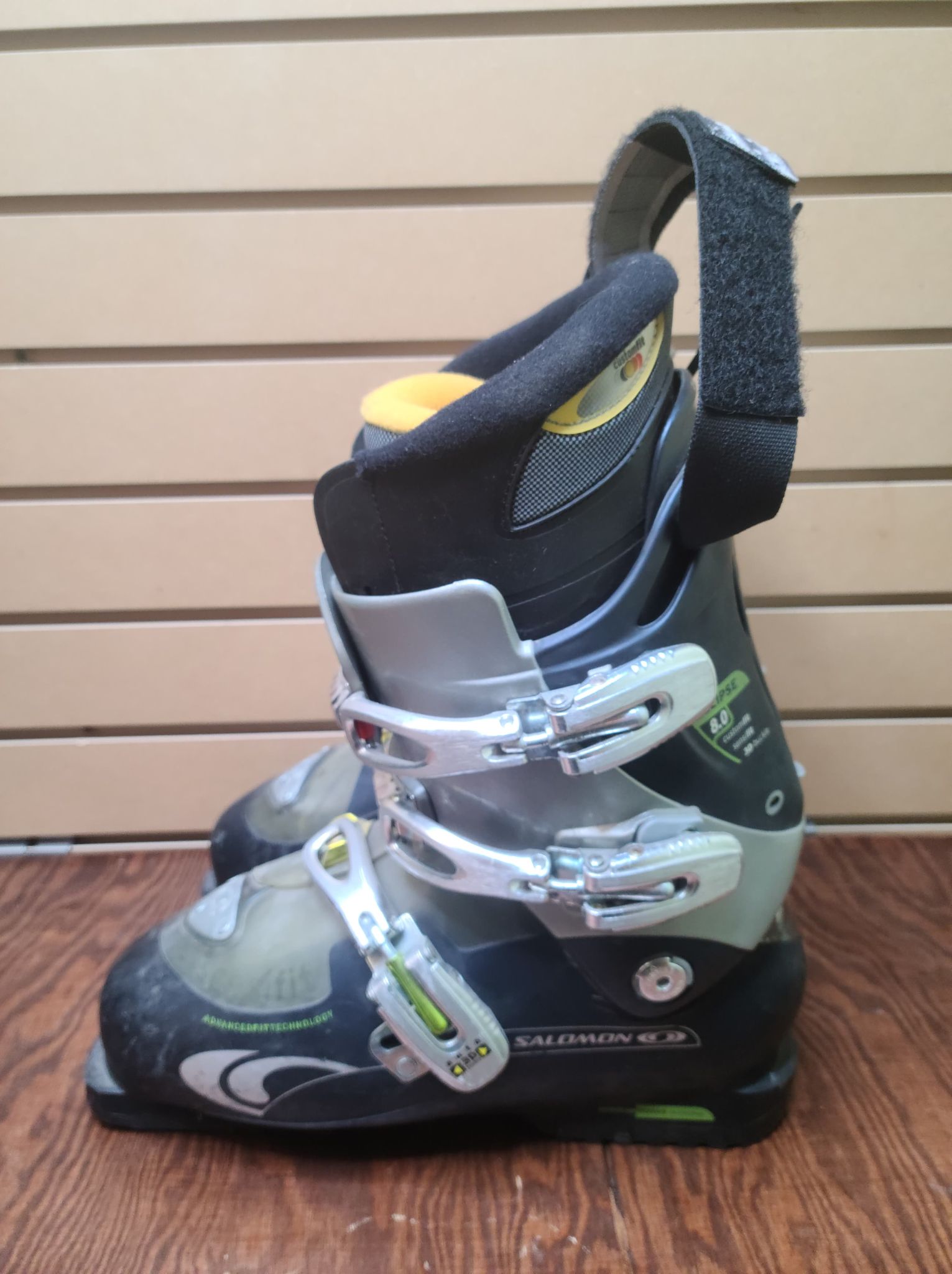 Paire de bottes de ski alpin de marque Salomon en très bon état.