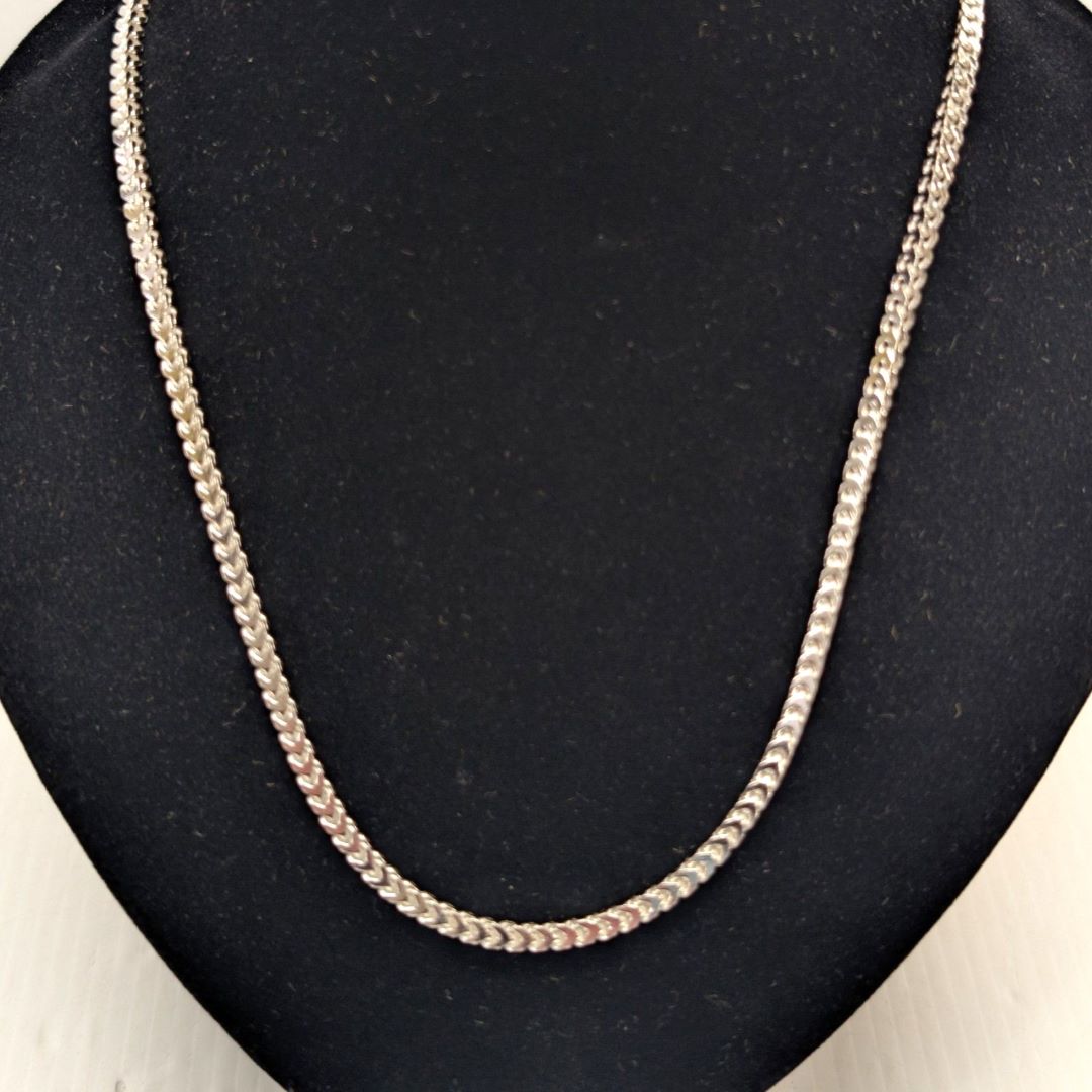Chaîne en argent 925 d’une longueur de 24 pouces et d’un poids de 30.13 grammes.