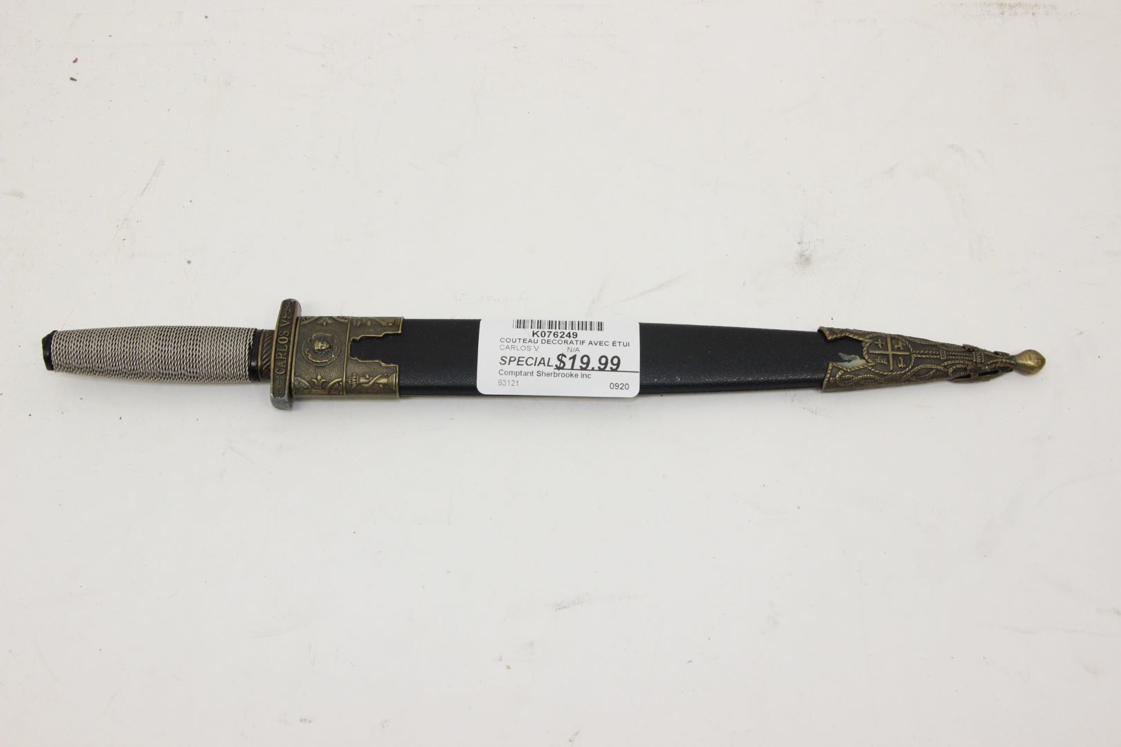 Couteau décoratif avec un étui avec Carlos V gravé sur la garde
