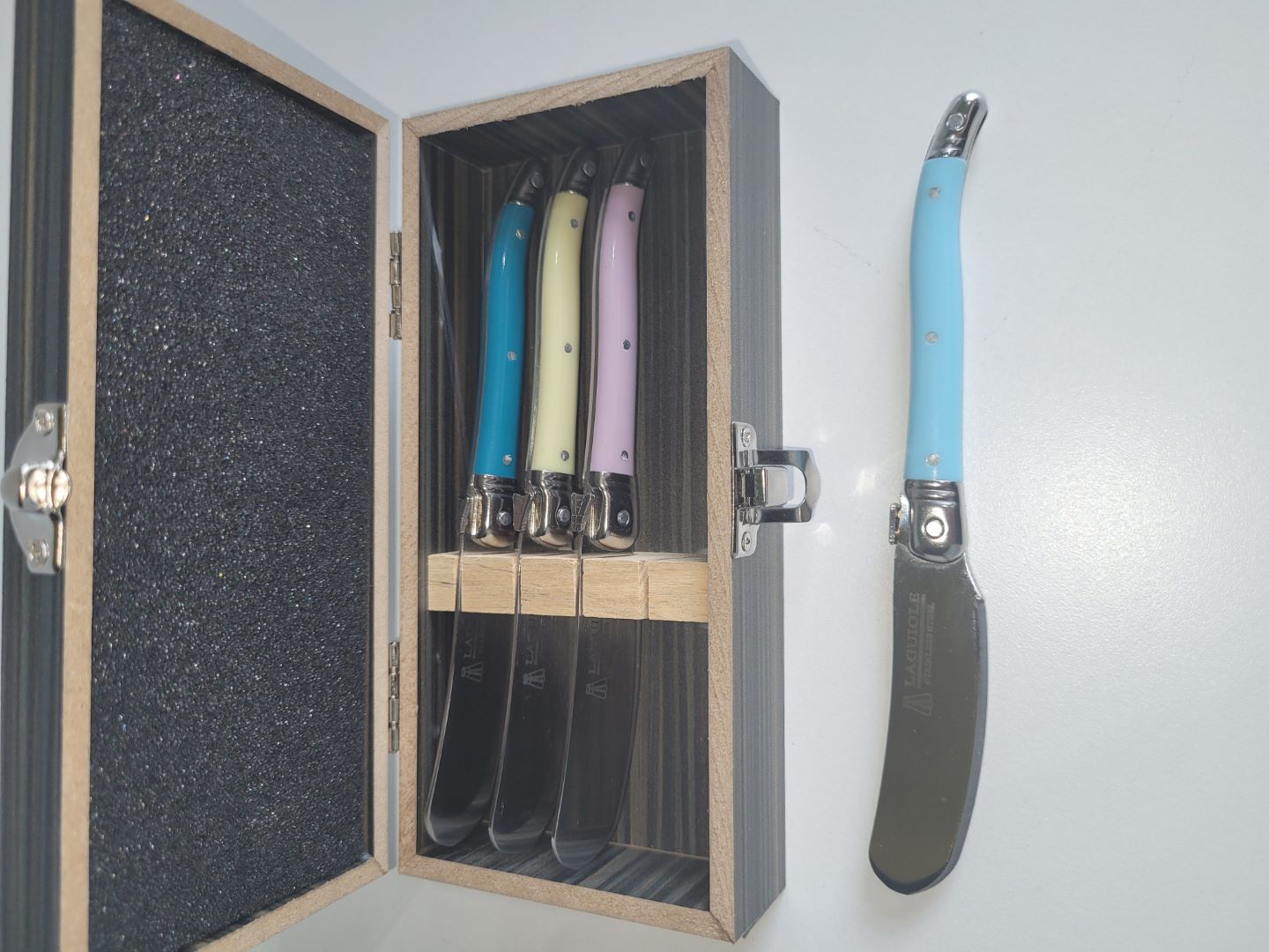 ENSEMBLE DE 4 COUTEAUX A FROMAGE DANS BOITE EN BOIS LAGUIOLE 0973051