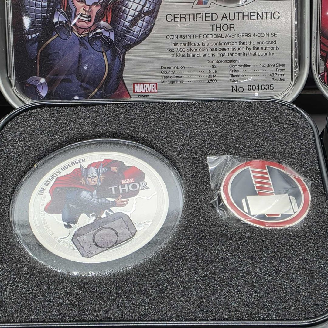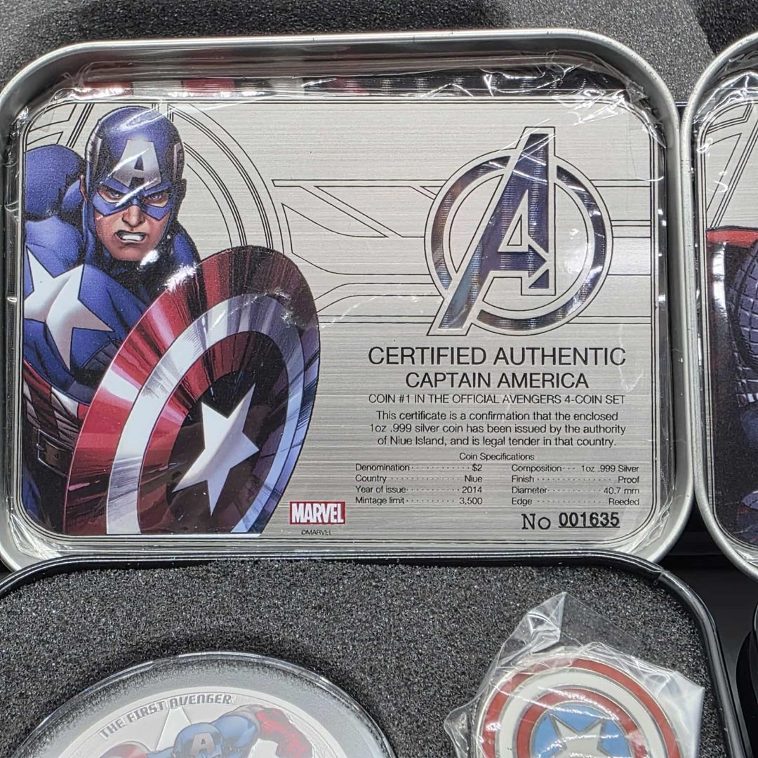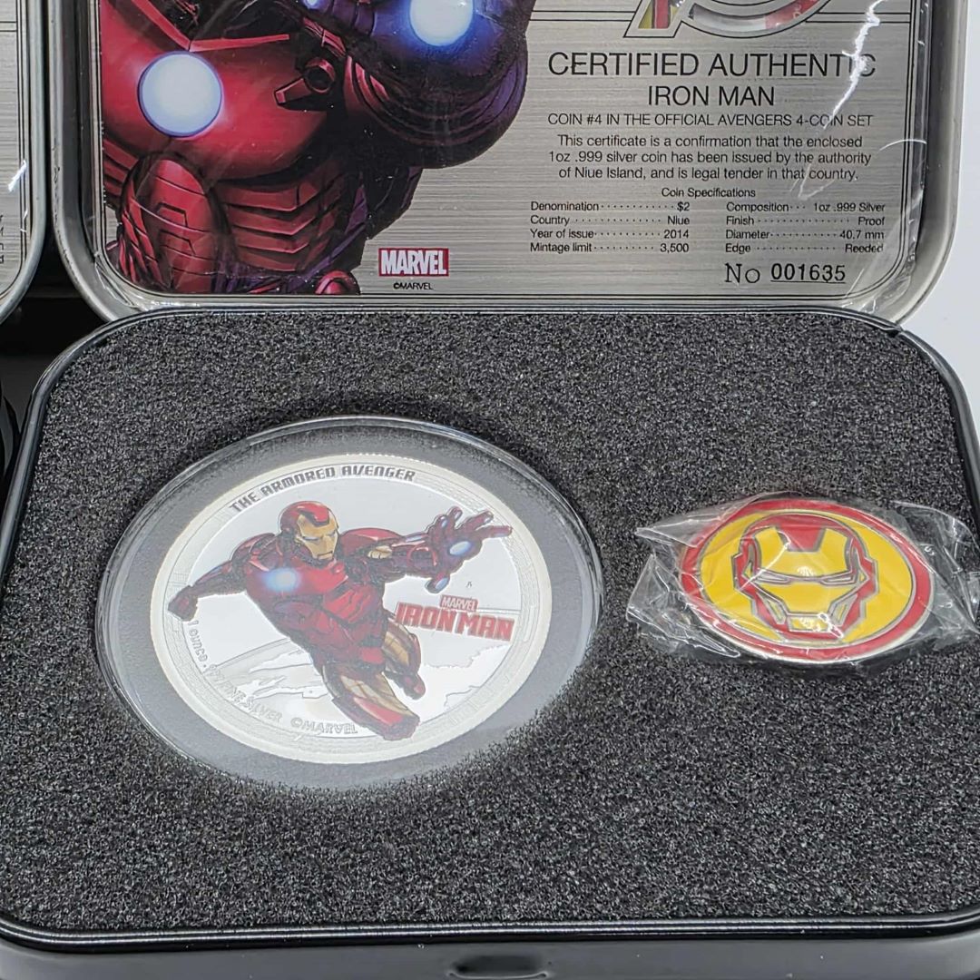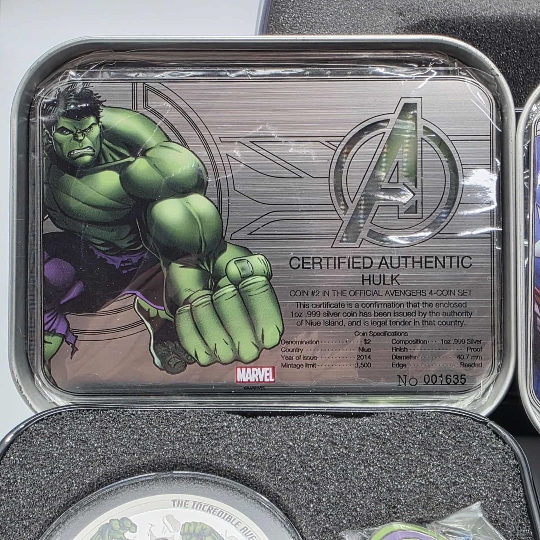 ENSEMBLE DE 4 PIÈCES DE 2$ EN ARGENT MONNAIE ROYALE CANADIENNE THE AVENGERS (IRON MAN, CAPTAIN AMERICA, THOR, HULK)