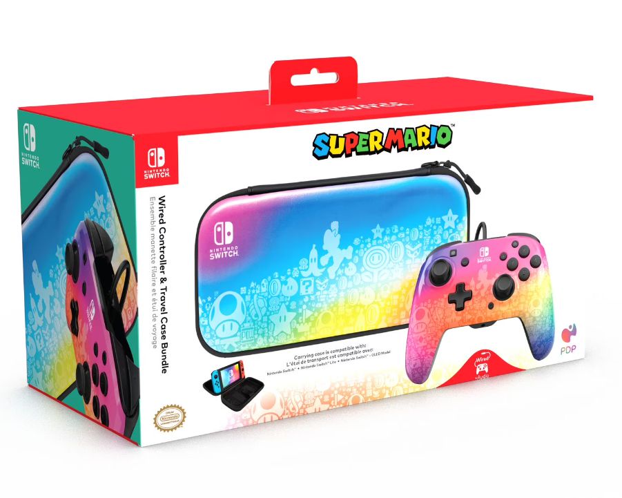 ENSEMBLE POCHETTE PLUS MANETTE FILAIRE POUR NINTENDO SWITCH PDP COMBO SUPER MARIO