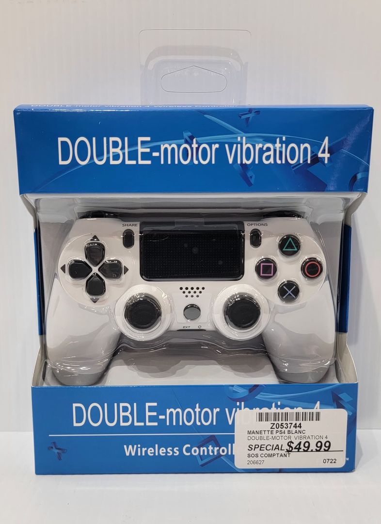 MANETTE PS4 BLANC DOUBLE-MOTOR VIBRATION 4