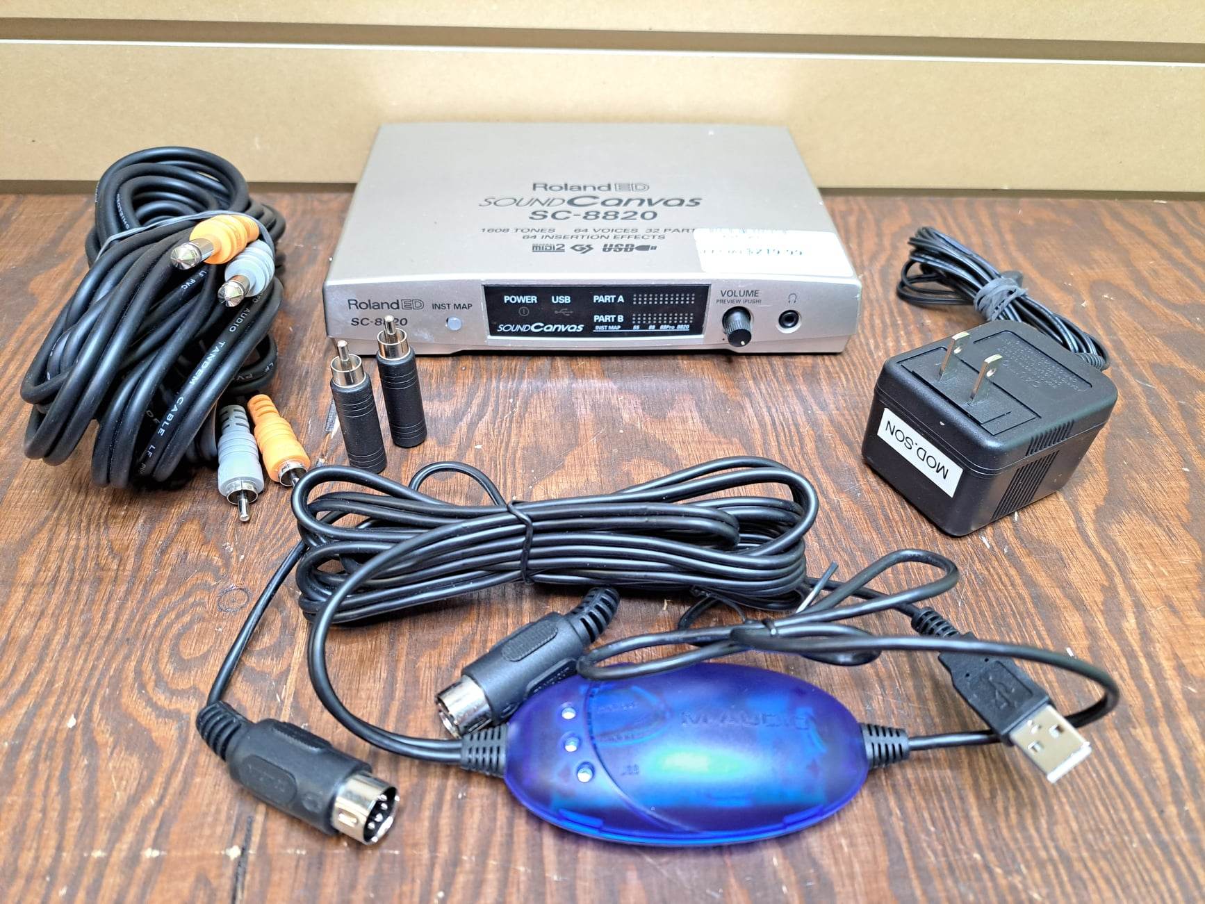 Le Roland Sound Canvas (SC-8820) est un synthétiseur numérique de bureau (aftertouch et sensible à la vélocité), 64 voix compatible GS/GM2 (édition via MIDI uniquement), doté d’un oscillateur, d’un filtre passe-bas résonant, d’un Enveloppe ADR, vibrato (avec delay), portamento, reverb/chorus/delay, EQ 2 bandes, multi-effets