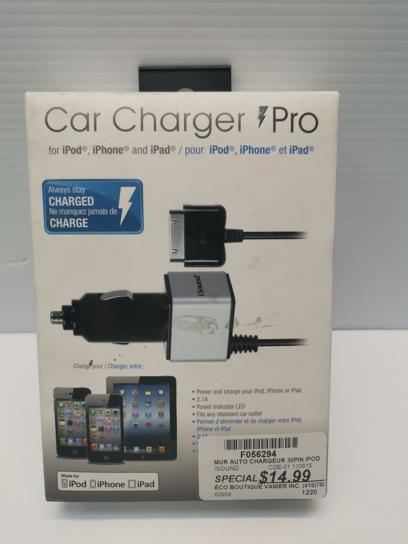 MUR AUTO CHARGEUR 30PIN IPOD ISOUND CDE-01 110815