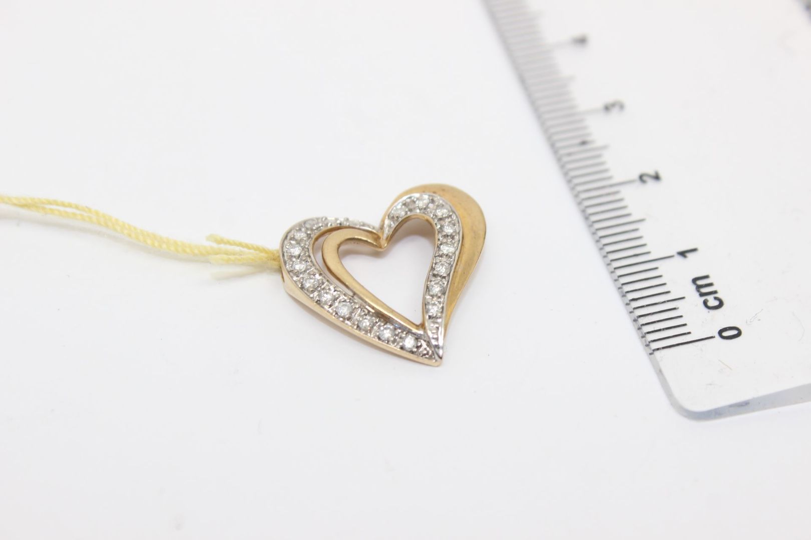 Pendentif en forme de coeur en or jaune et 20 diamants. Le pendentif pèse 1.74 grammes