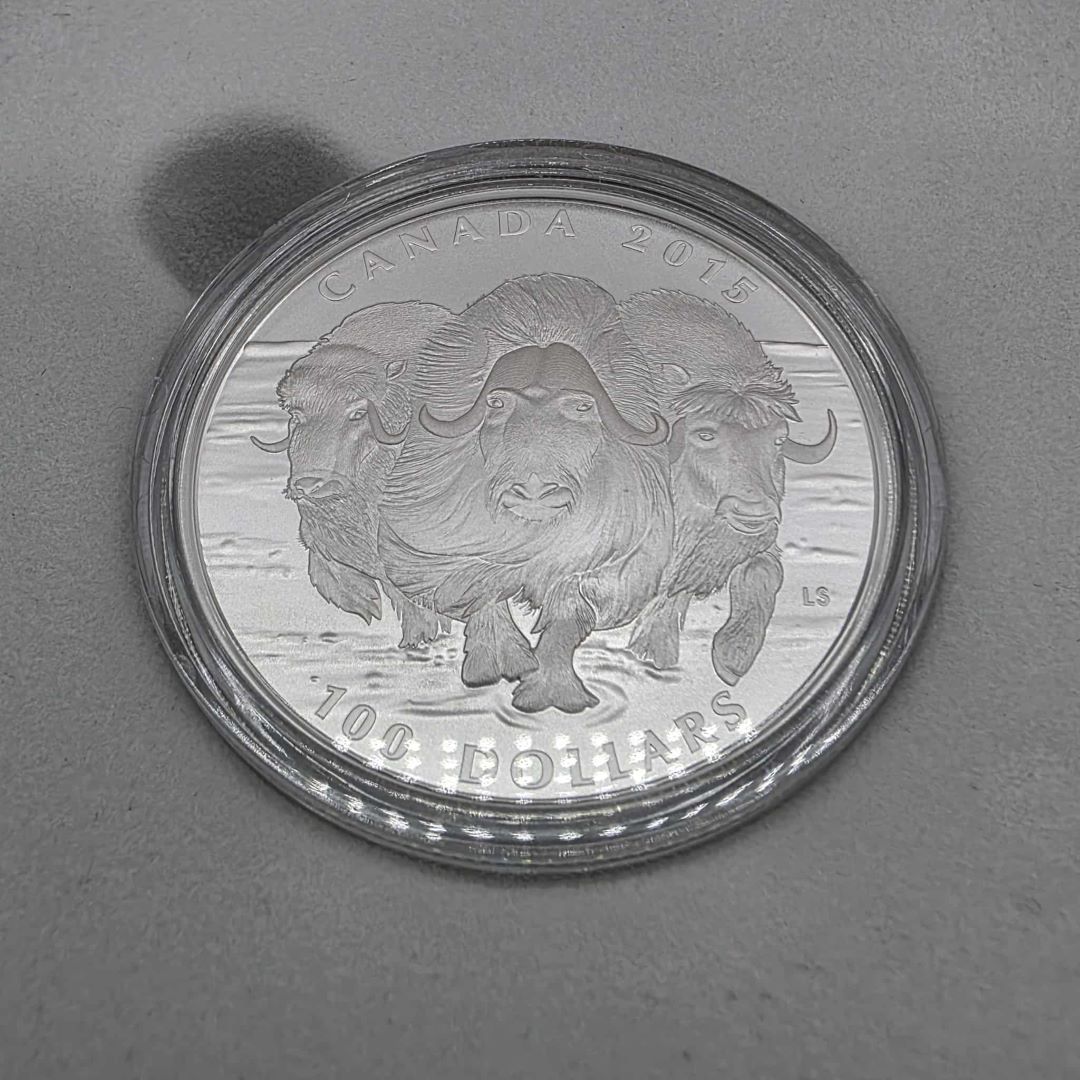 PIÈCE DE MONNAIE DE $100 EN ARGENT MONNAIE ROYALE CANADIENNE BOEUF MUSQUÉ