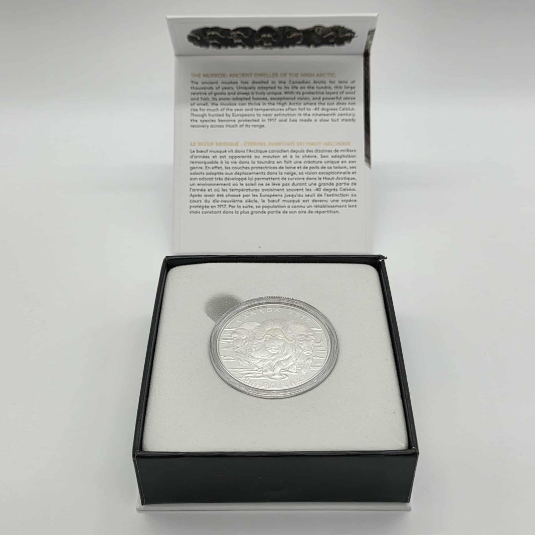 PIÈCE DE MONNAIE DE $100 EN ARGENT MONNAIE ROYALE CANADIENNE BOEUF MUSQUÉ