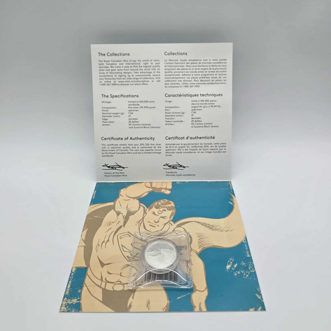 PIÈCE DE MONNAIE DE 20$ EN ARGENT MONNAIE ROYALE CANADIENNE SUPERMAN