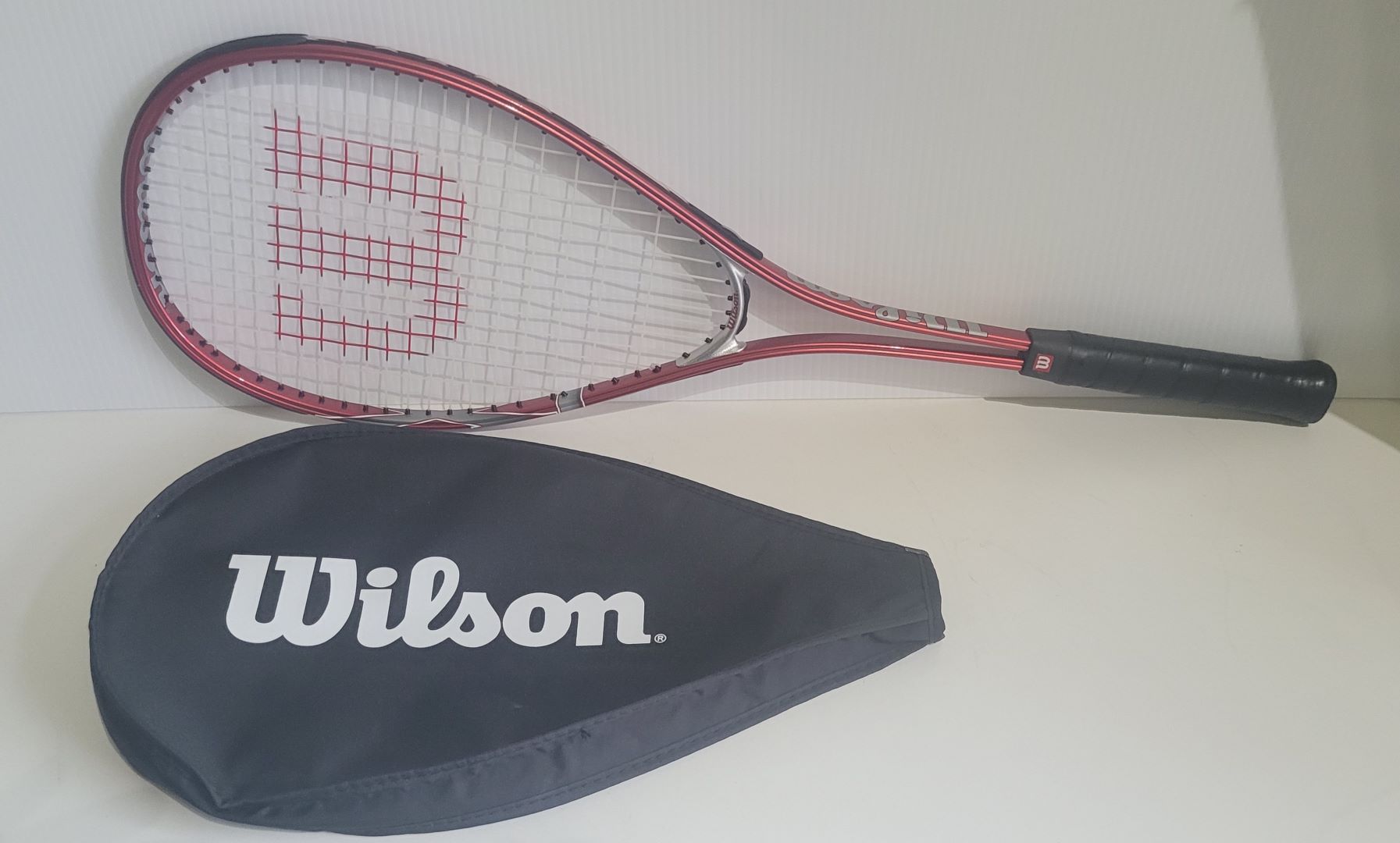 RAQUETTE DE SQUASH ROUGE +ETUI WILSON HYPER TITANIUM 3 3/4 »