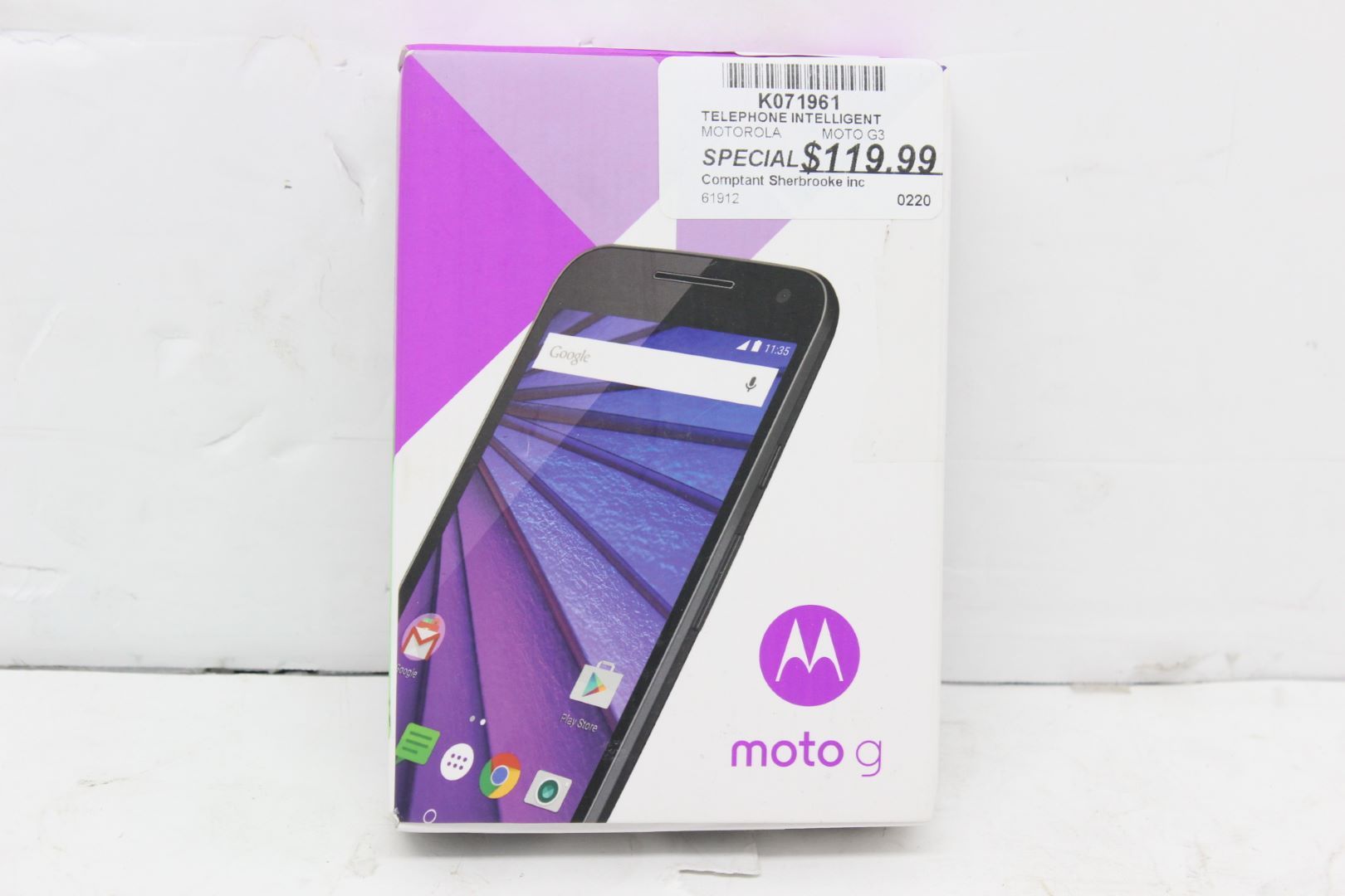 Téléphone intelligent Motorola Moto G3 neuf avec tout ses accessoires inclus.